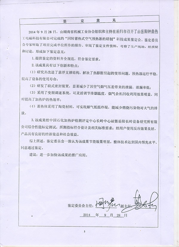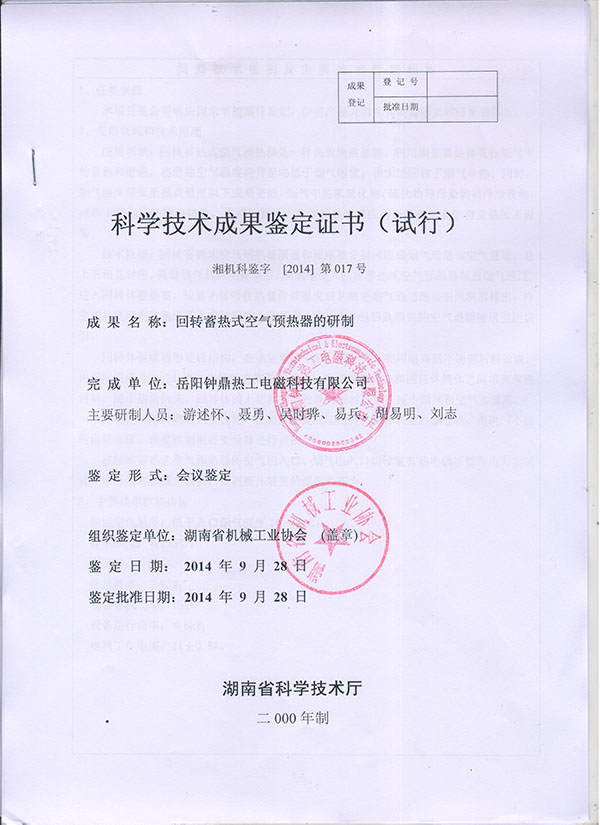 空預(yù)器成果鑒定證書